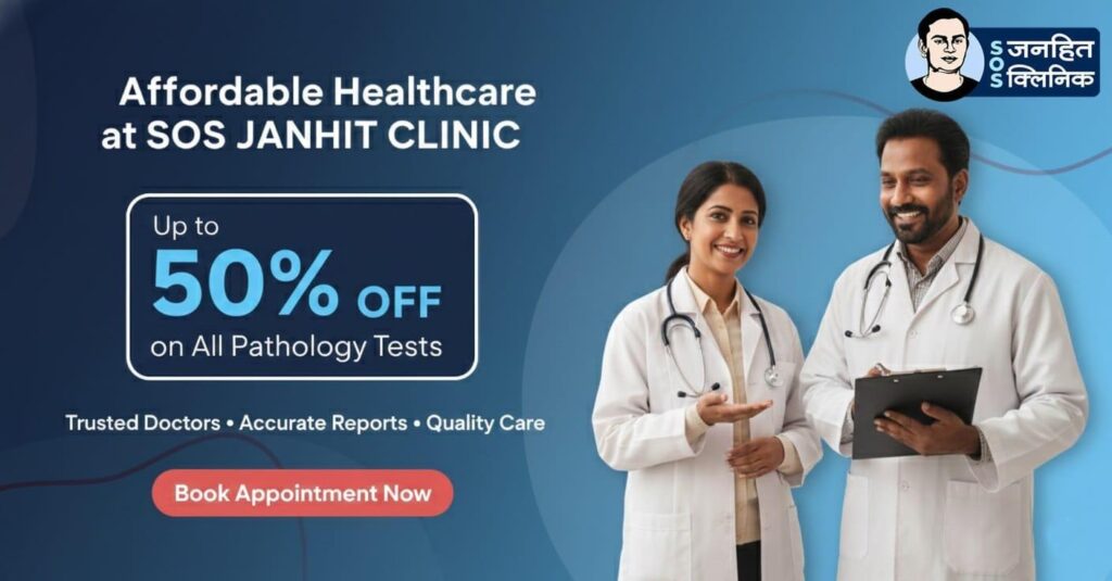 SOS जनहित क्लीनिक की एक प्रमुख विशेषता यह है कि यहाँ सभी पैथोलॉजी जाँचों पर 50% तक की विशेष छूट दी जाती है, जिससे मरीजों पर आर्थिक बोझ कम होता है। सटीक रिपोर्ट्स और मरीज-केंद्रित सेवाएँ इस क्लीनिक को क्षेत्र में एक विश्वसनीय स्वास्थ्य संस्थान बनाती हैं।